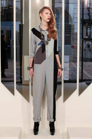 Het Epigram, “Der Mittler zwischen Hirn und Händen muss das Herz sein“, dat Fritz Lang de kijker meegeeft voorafgaand aan zijn film Metropolis uit 1927, is van grote betekenis voor onze herfst/wintercollectie. We lieten ons voor de herfst/wintercollectie 2010-11 inspireren door het zichtbare pracht en praal van Metropolis dat contrasteert met de sombere en smoezelige wereld diep onder de stad. Edelmetaalachtige en glanzende zijde perfect gecombineerd met matte stoffen zoals katoen en wol, benadrukken het contrast. Krachtige scherpe geometrische patronen worden afgewisseld met ronde en glooiende vormen. Prints verwijzen naar de imponerende industriële gebouwen uit Metropolis. Diepe donkere verzadigde kleuren worden door heldere kleuren verlicht.